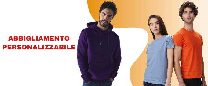 Abbigliamento personalizzabile con serigrafia, stampa digitale diretta e stampa DTF.